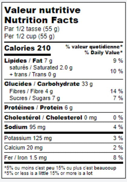 Données nutritionnelles