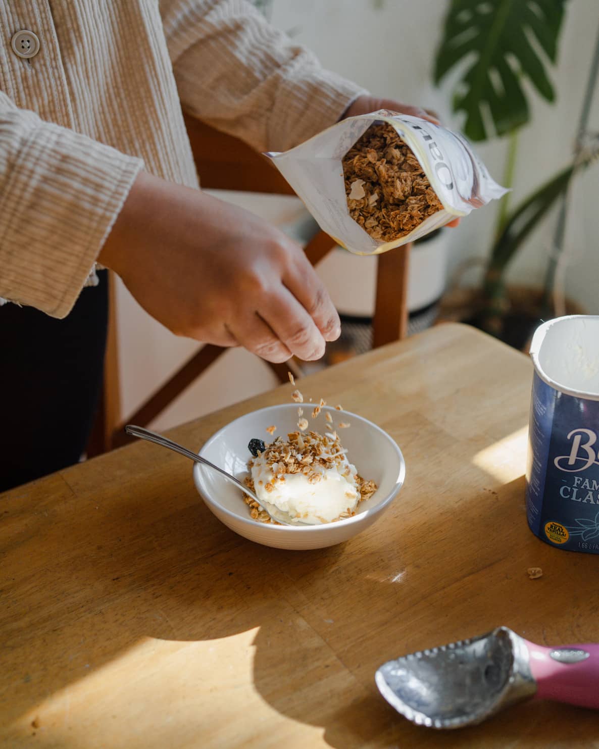 Savourez notre granola avec le lait ou le yaourt de votre choix, sur un bol de smoothie, ou tout simplement à la cuillère !