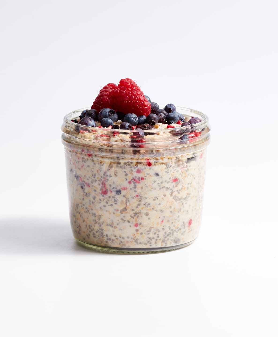 Our vegan overnight oats are loaded with nutrients like fibre, protein, magnesium, potassium, and omega 3 fatty acids, among other things.